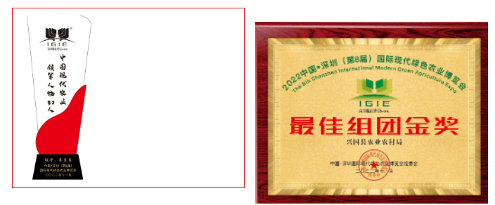 綠博會(huì)上,江西國康農(nóng)業(yè)集團(tuán)有限公司董事長茅賽賽榮獲“中國現(xiàn)代農(nóng)業(yè)領(lǐng)軍人物”稱號(hào),興國縣農(nóng)業(yè)農(nóng)村局榮獲“最佳組團(tuán)金獎(jiǎng)”。