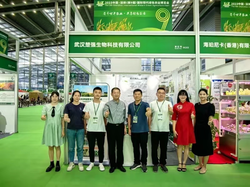 第九屆深圳綠博會上揭西商會攜手會員代表企業(yè)——深圳市家味康食品有限公司,深圳市遠潮生物科技有限公司,武漢楚強生物科技有限公司展示了公明臘腸,鱈魚膠和生物肥料等優(yōu)質(zhì)農(nóng)產(chǎn)品。
