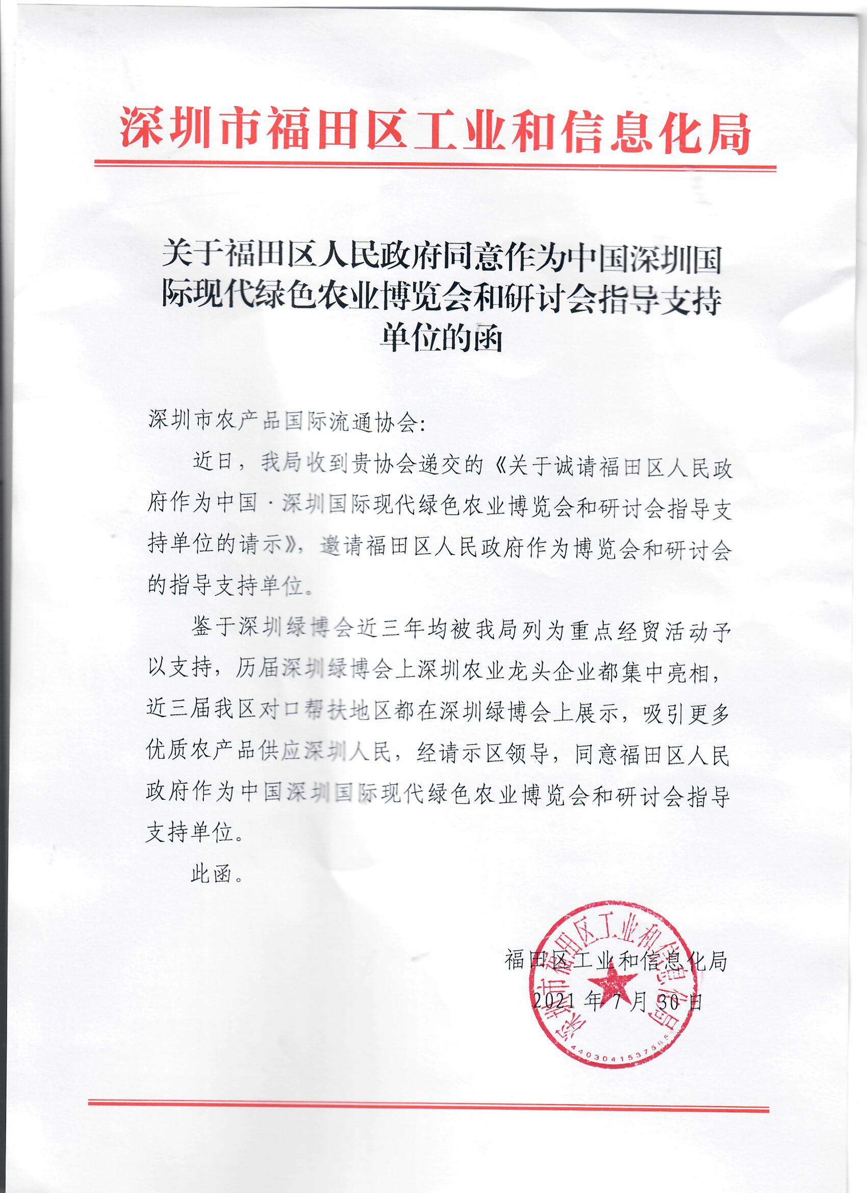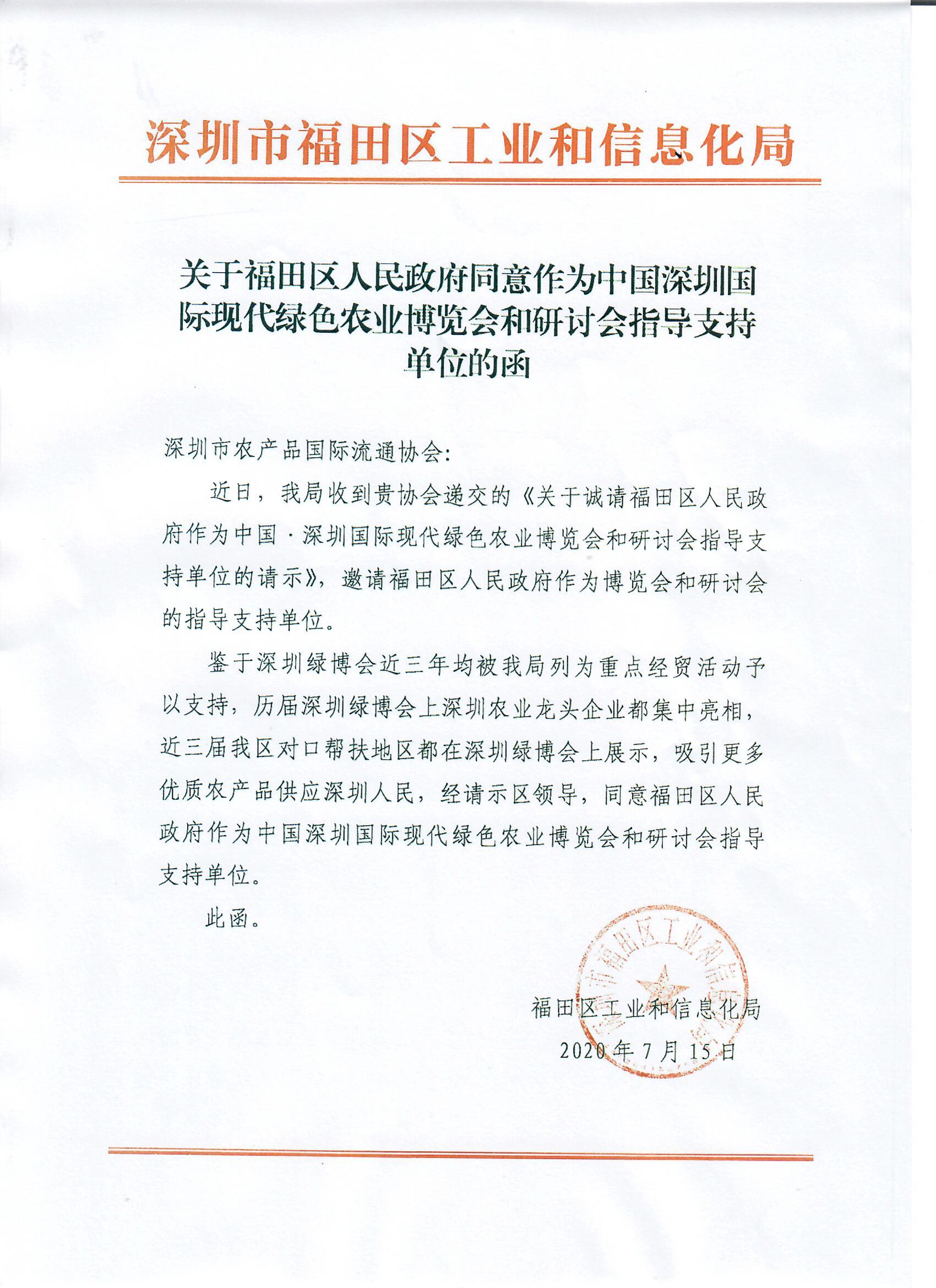 福田區(qū)人民政府同意作為中國(guó)·深圳國(guó)際現(xiàn)代綠色農(nóng)業(yè)博覽會(huì)指導(dǎo)單位